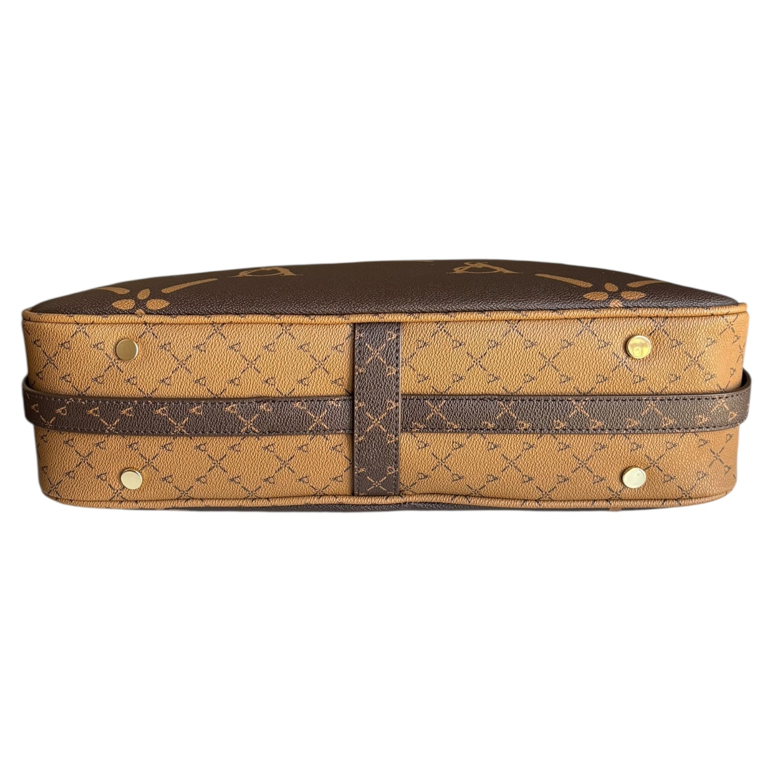 Atelier Du Sac borsa a spalla in ecopelle goffrata logata, colore testa di moro e cuoio. Chiusura con zip e tracolla regolabile. Dimensioni 39x25 cm.