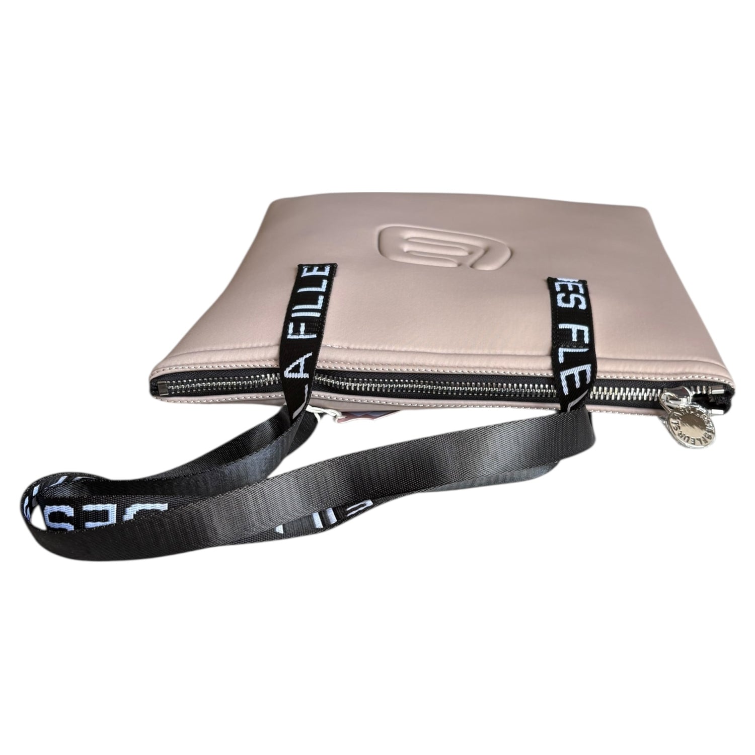 Borsa a spalla La Fille Des Fleurs in tessuto Tekno Fabric taupe con chiusura zip, leggera e resistente, design moderno 35x37 cm perfetta per un look elegante e contemporaneo.