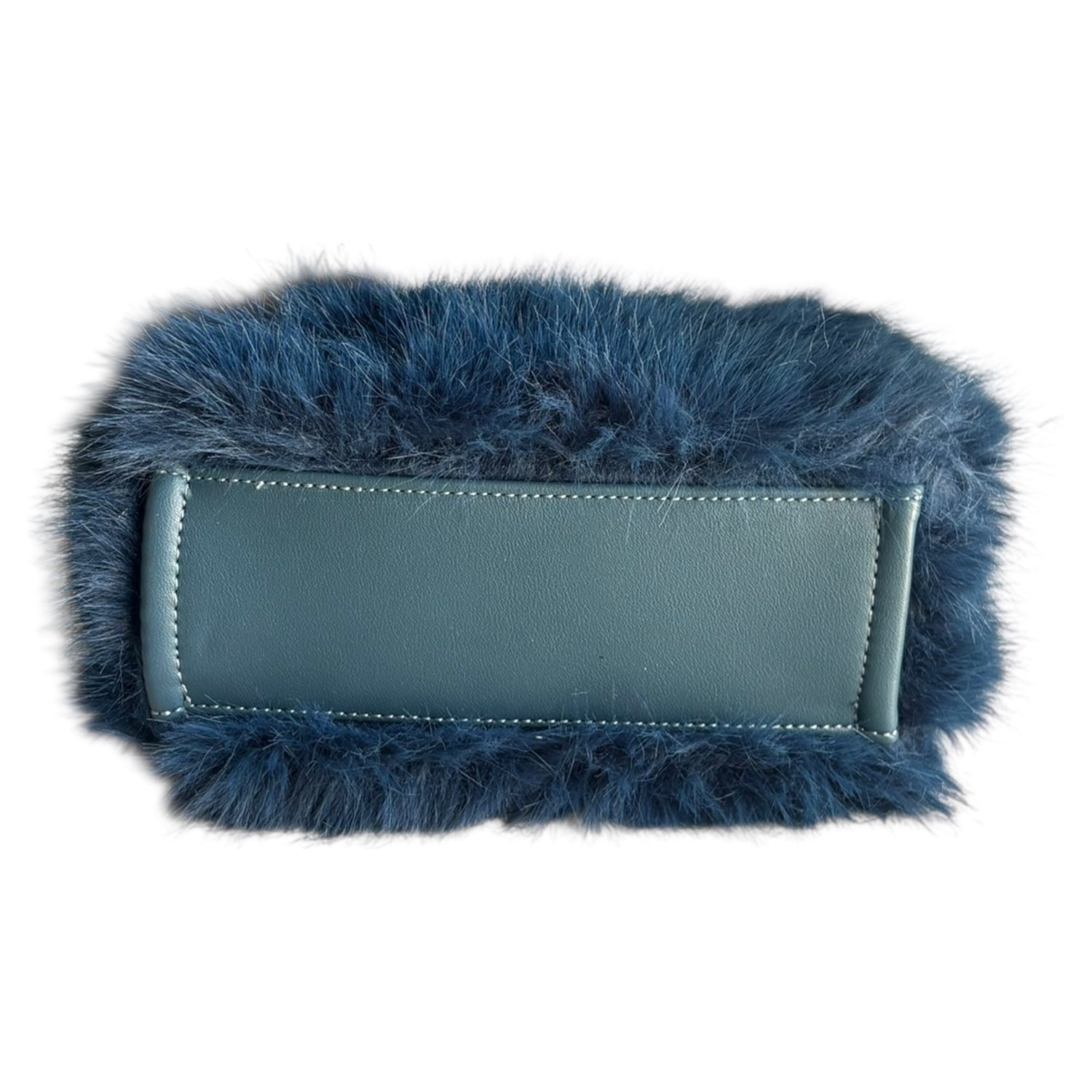 M*BRC Borsa a mano e a spalla in ecopelliccia colore blu con chiusura a cerniera. Misure 24x15 cm. Doppia tracolla in dotazione per uno stile versatile e raffinato.