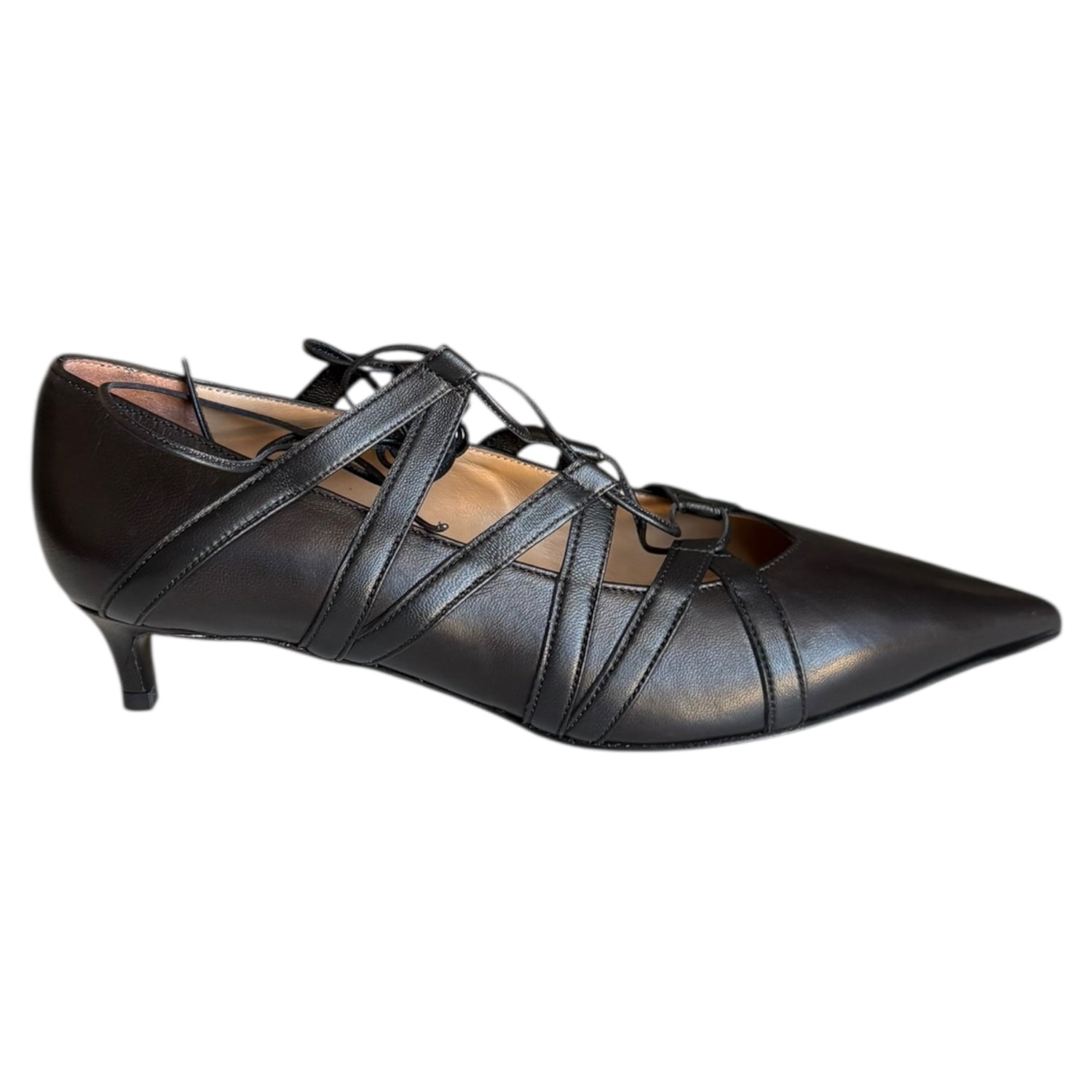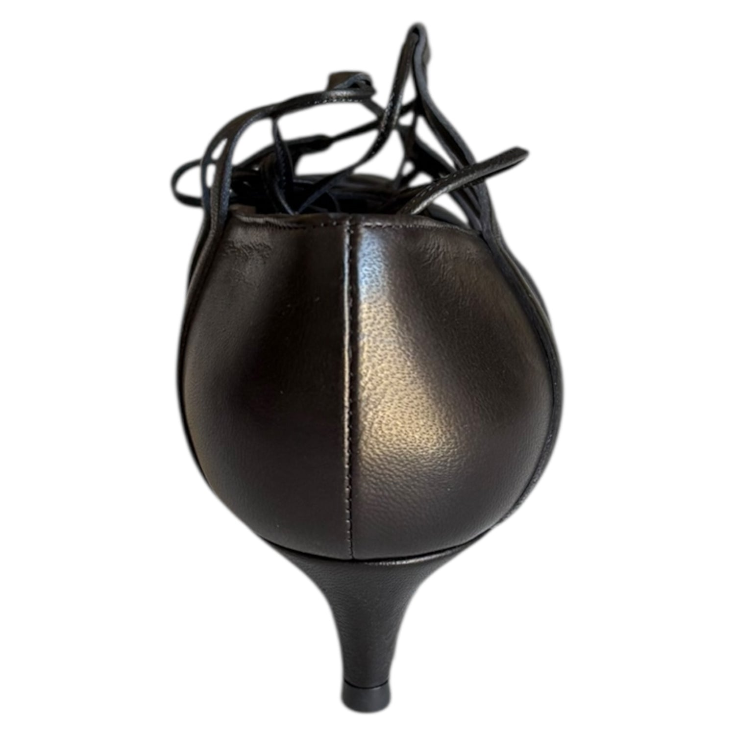 Decolleté Prosperine in pelle nera con fondo in vero cuoio e tacco 3 cm. Chiusura con lacci per un look raffinato e originale.