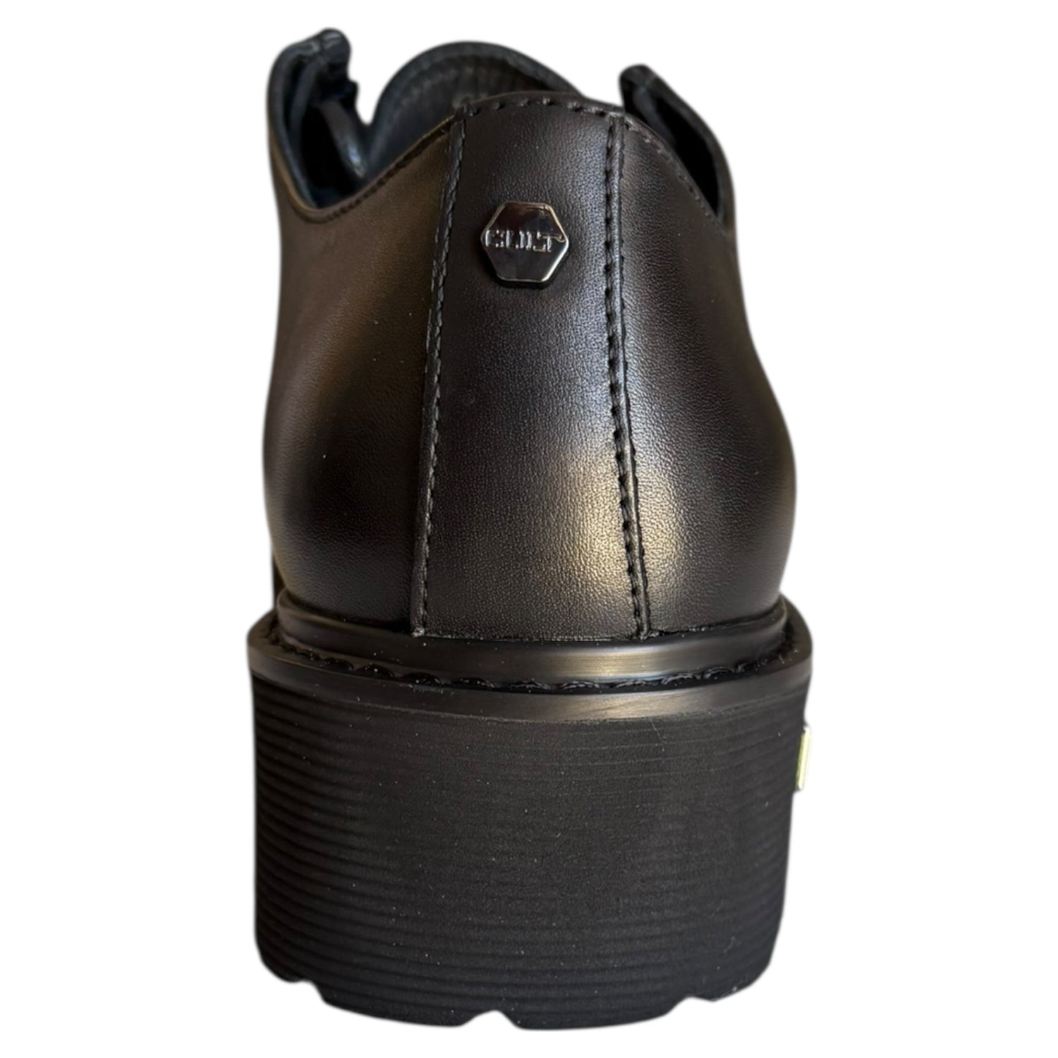 Scarpa stringata Cult in pelle nera con fondo in gomma e tacco 4 cm. Chiusura con lacci per uno stile elegante e confortevole adatto a ogni occasione.