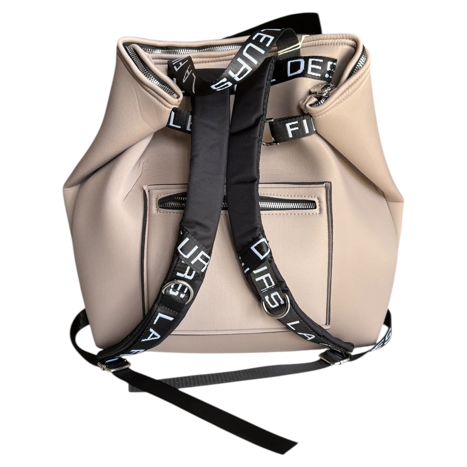 Zaino La Fille Des Fleurs in tessuto Tekno Fabric taupe con chiusura a cerniera, spallacci regolabili e design capiente 33/50x37 cm, ideale per uno stile moderno e funzionale.
