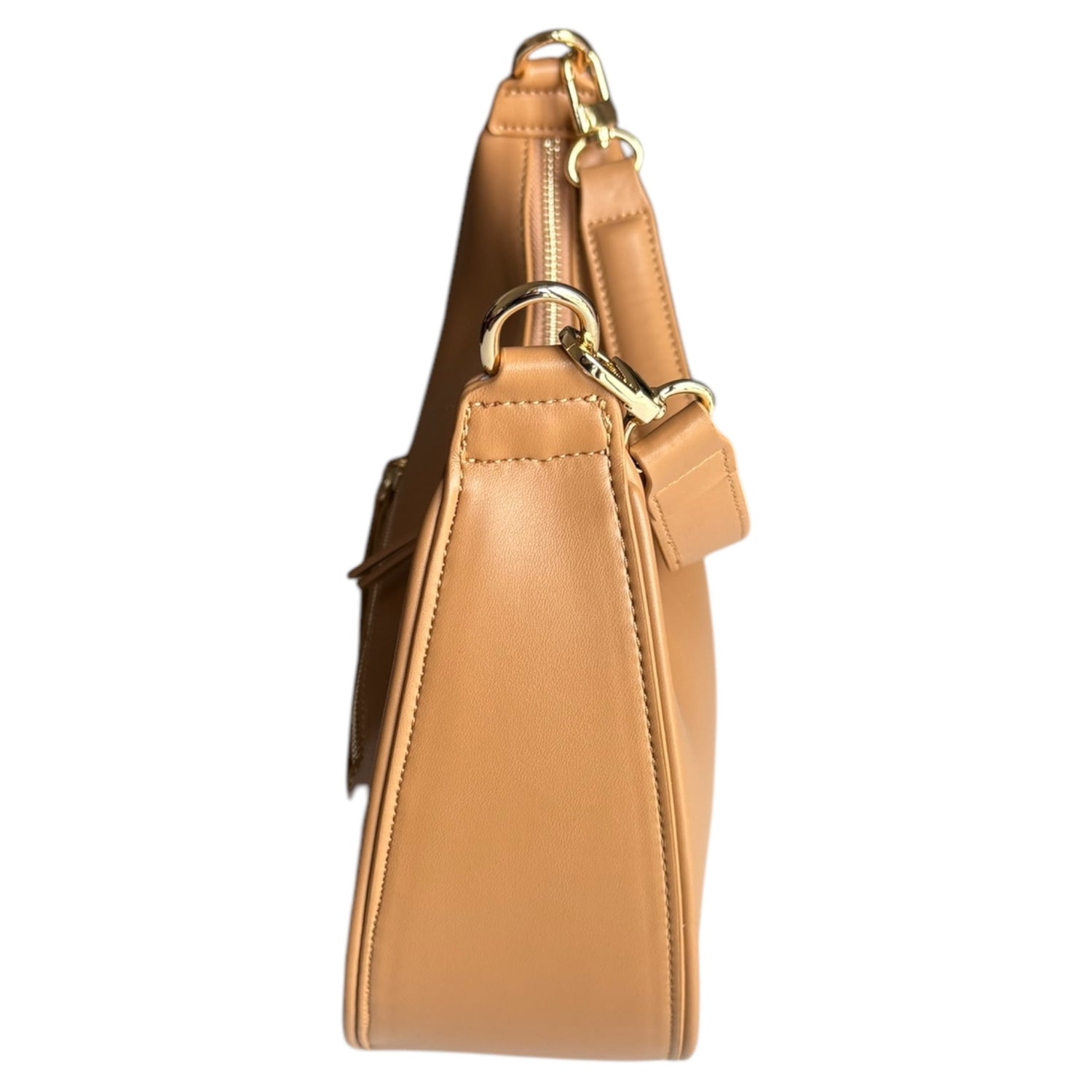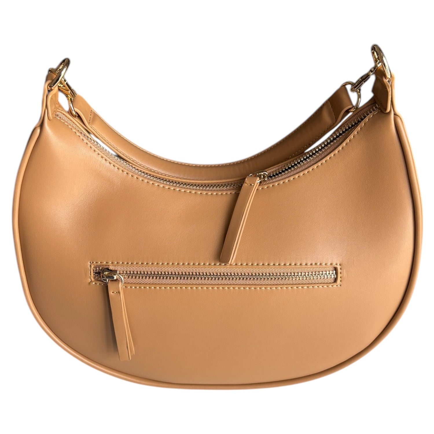 Borsa a spalla in ecopelle cuoio, con chiusura a zip. Con dimensioni di 29 cm di larghezza e 29 cm di altezza, è un accessorio pratico e stiloso, perfetto per ogni occasione.