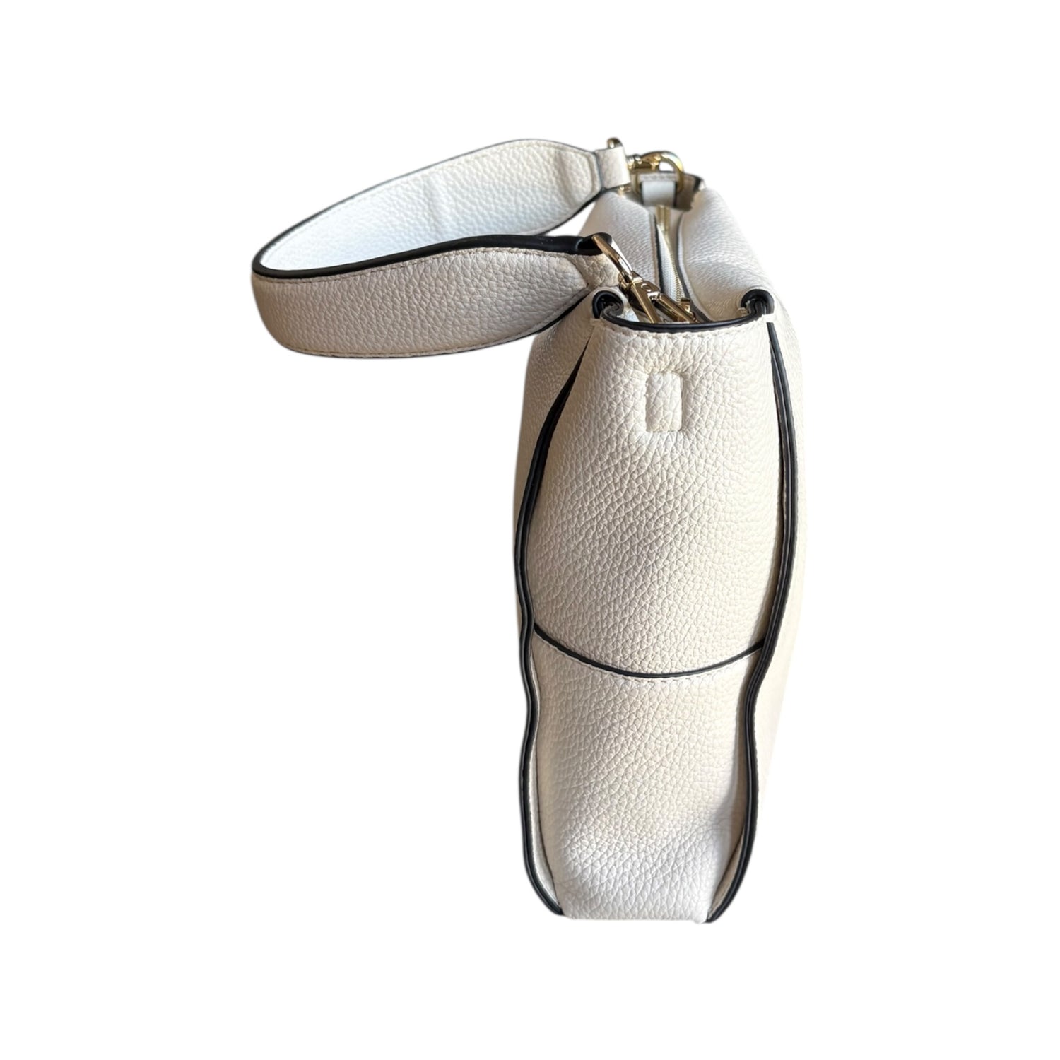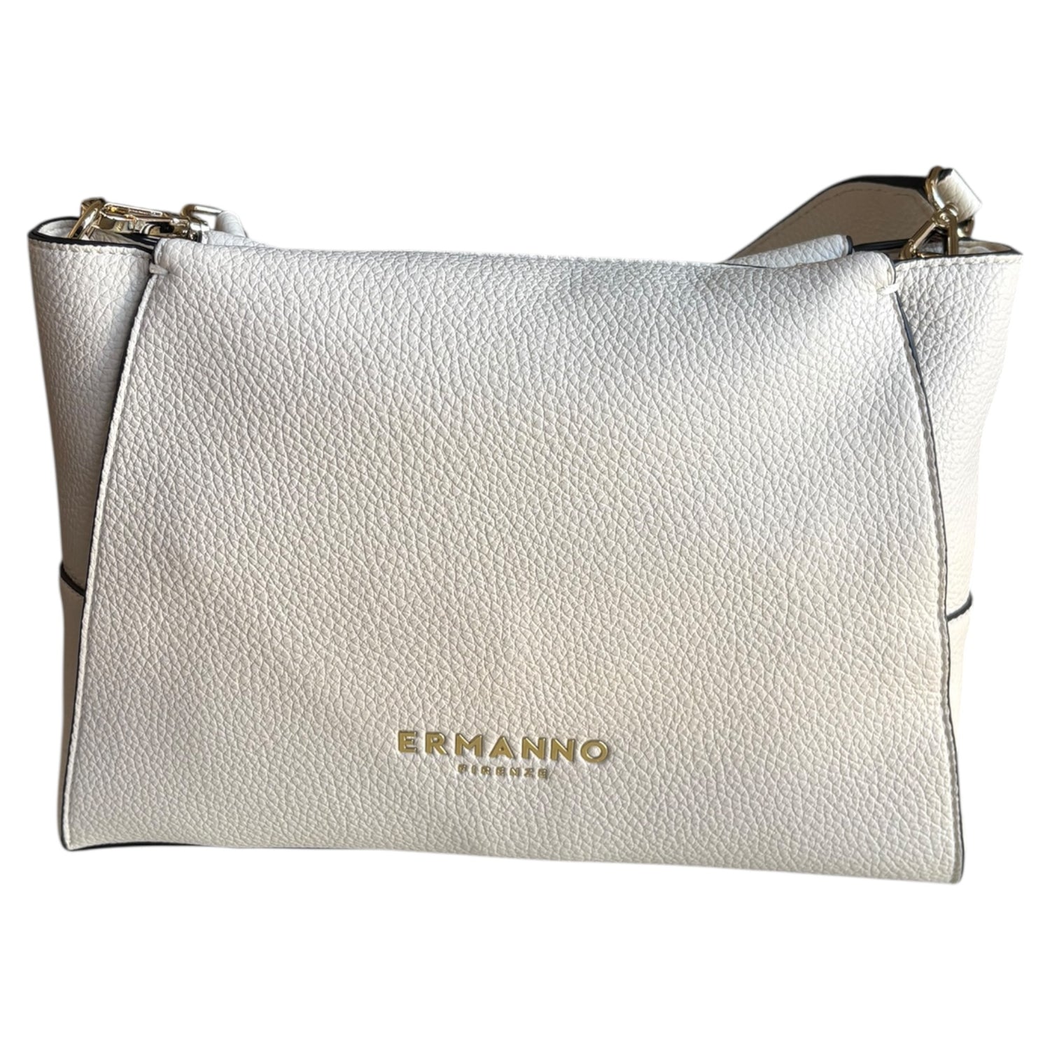 Borsa a spalla e mano in ecopelle Ermanno Firenze, colore avorio, con zip e tracolla logata regolabile. Dimensioni 27x20 cm, compatta ed elegante.