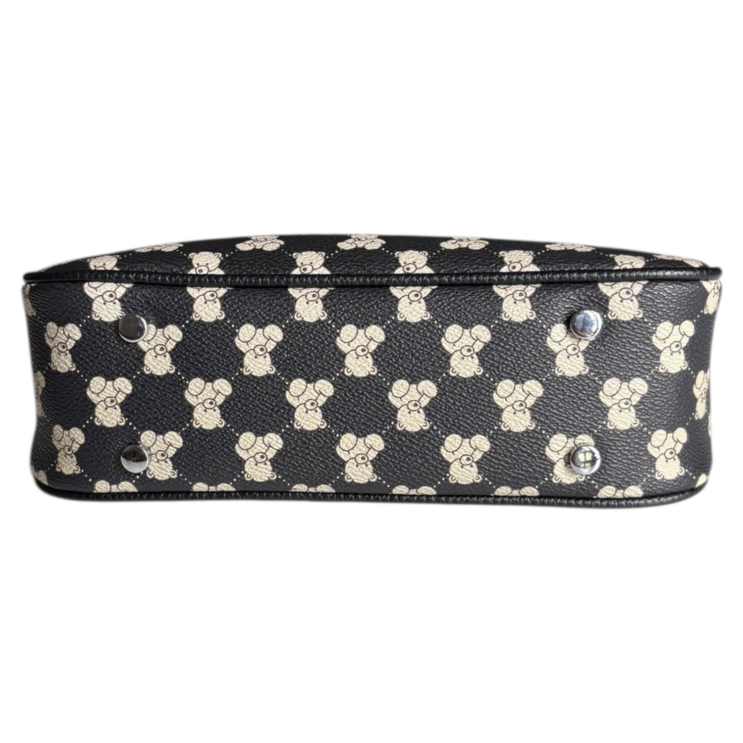 Borsa a spalla PashBag in PVC nero fantasia Teddy con chiusura a cerniera, 25x16 cm. Completa di tracolla in dotazione.