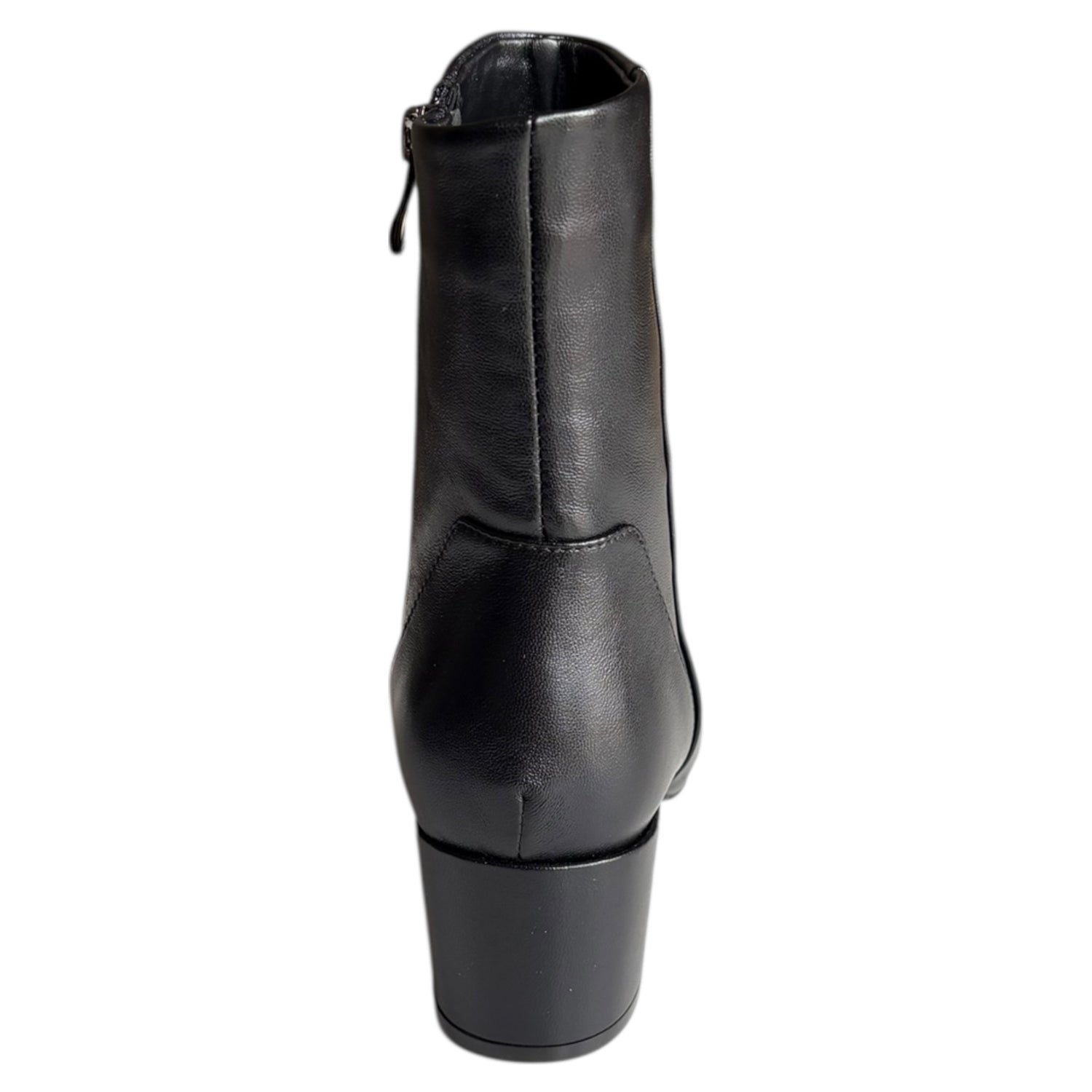 Tronchetto Luciano Barachini in pelle nera con fondo sintetico, tacco 5 cm e chiusura zip. Elegante e versatile, ideale per completare i look di stagione.